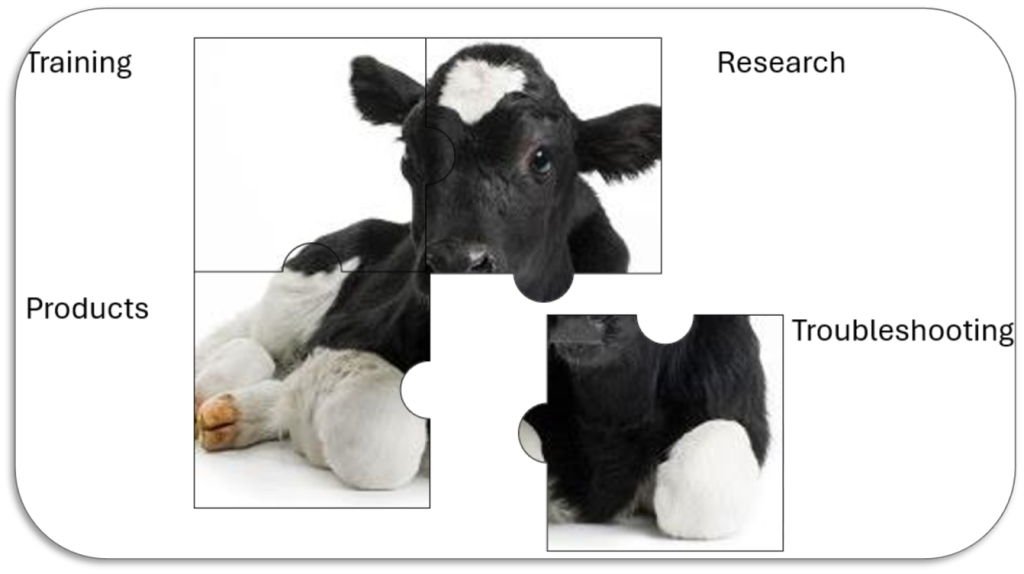 With experience in both academia and industry, Jim brings a wide breadth of knowledge to bear on your problem. If you’re problem is calf product or program related, he’s likely to have similar experience. Whether you are still in the planning stages of a new product, dealing with a spike in on-farm calf mortality, or dealing with a report of feed quality problems in the field, it’s likely that Jim has been there and done that. Reach out to discuss your problem today.